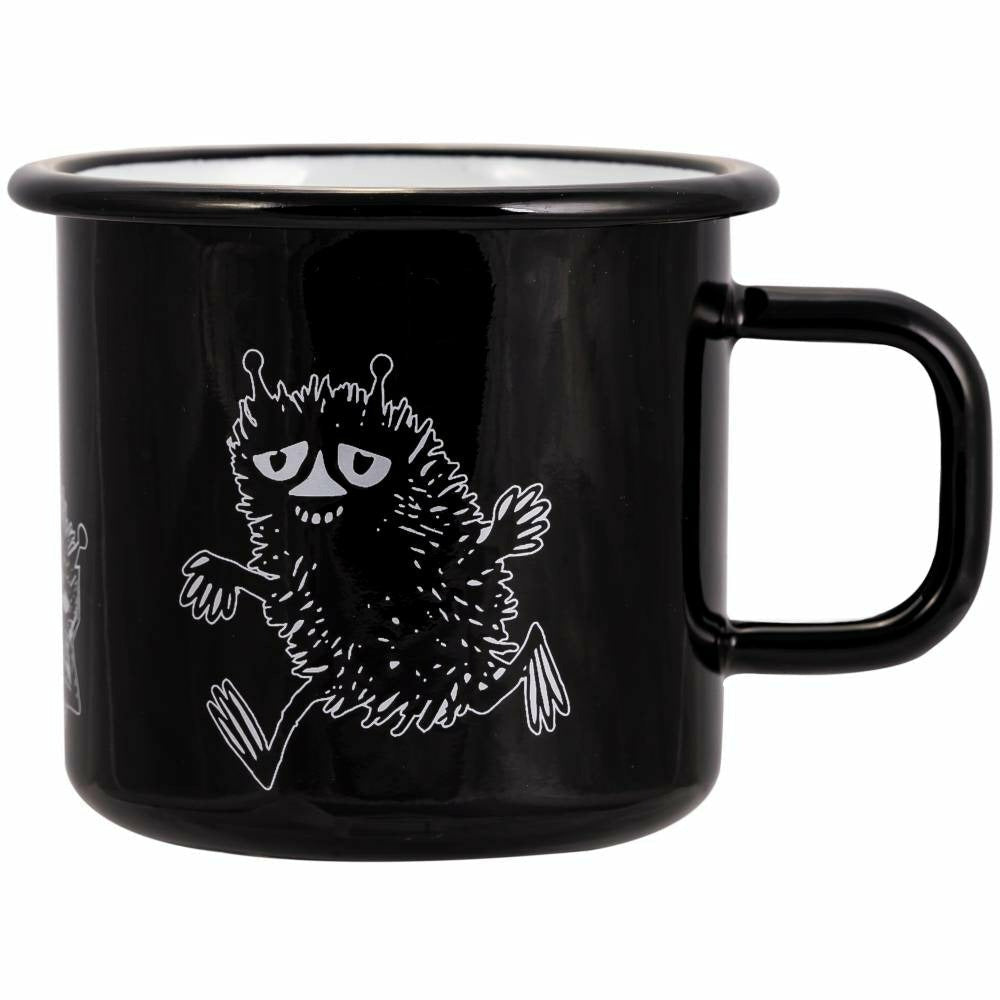 Beautiful black Moomin mug featuring Stinky. Muurla combines design and durability in this beautiful Moomin enamel mug. They are suitable not only for traditional table setting but also for any kind of outdoor use - including hiking, cottage and boat. Cheer up your coffee and tea moments! Volume 3.7dl. Machine washable.